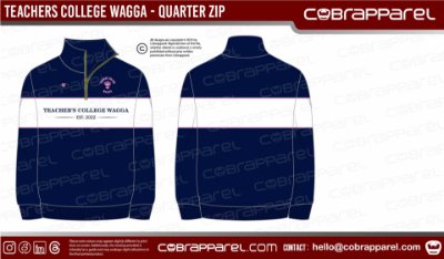 These colour block quarter zips are an opportunity for you to represent the Teachers College Wagga in trending, classy colour blocked quarter zips.